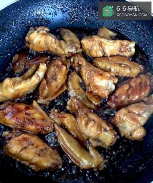 8汁液变少的时候就可以转小火继续收汁,鸡翅保留一点点水分就可以出锅开吃了;