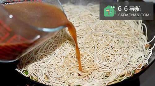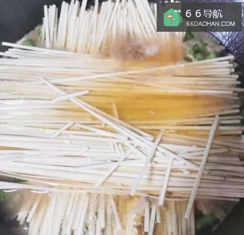 7待锅中水分快收干时,将之前盛出的汤汁淋至面上,不要一次加完,可分作三次加入,平均一次五分钟左右面条差不多就熟透了;