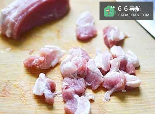 2五花肉洗净切成薄片,放置碗中备用,并准备好葱、蒜等配料;