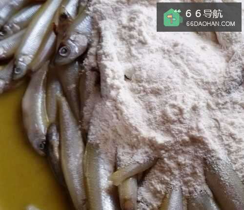 7搅拌均匀,让每条鱼都均匀的粘上面粉