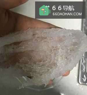 2泡发4小时后,沥水,按照燕窝的纹理条状理开,不要可以撕段影响燕盏口感。
