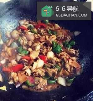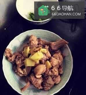 2加油烧热,炒兔肉,加入生姜,加热水焖一会,因为兔肉带骨头,怕不熟,盛起