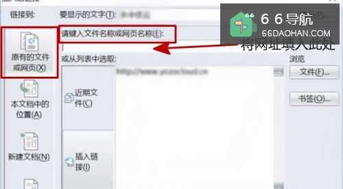 2点击【超链接】后会出现一个“插入超链接”的对话框,在弹出框中选择【原有的文件或网页】,在输入框中输入外链的地址,点击【确定】,这时候点击该文字就可以跳转到指定界面