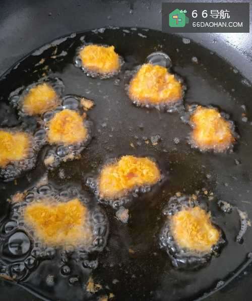 6起锅热油,油温6成热时,下如鸡胸肉,小火炸至金黄色,捞出沥干油份,即可开吃。