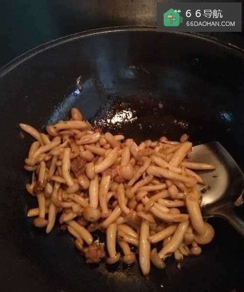 9将白玉菇和肉末都炒熟后,就可以装盘了,非常香的一盘菜。