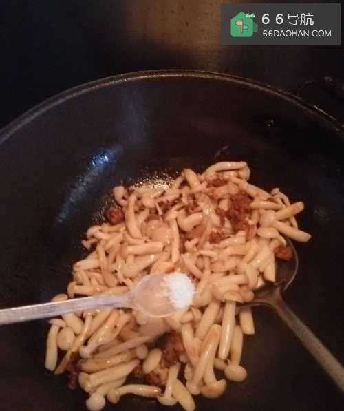 8在锅中加入适量的盐,增加蘑菇的香味。