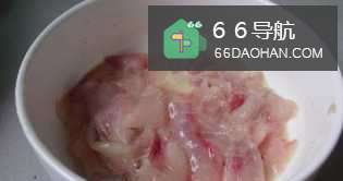 8洗好的鱼片用一茶匙盐、一茶匙白胡椒、半个蛋清、三茶匙干淀粉腌渍,用手仔细反复抓拌均匀。
