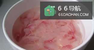 7片好的鱼片,用一汤匙盐搓洗一遍后冲水反复淘洗成晶莹透明的鱼片。