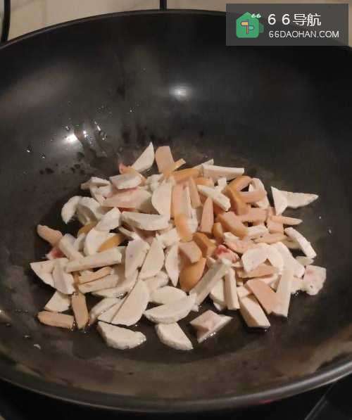 4焖好后再倒入肉丸片,翻炒,然后加入少许盐,一勺蚝油调味,翻炒均匀就可以了