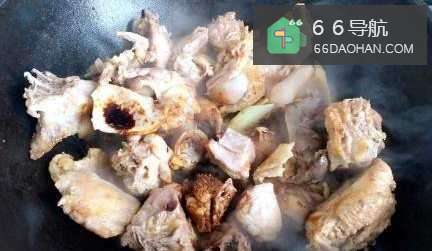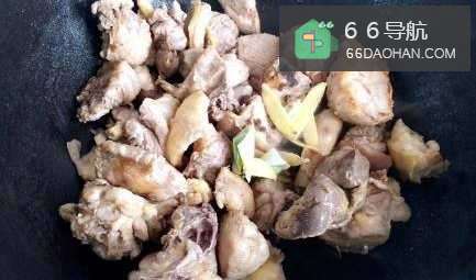 炒至鸡肉泛黄出油脂,然后放入适量葱姜花椒炒香。