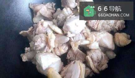 2接下来,起锅油热,放入鸡块煸炒。