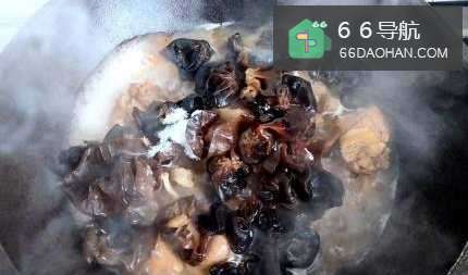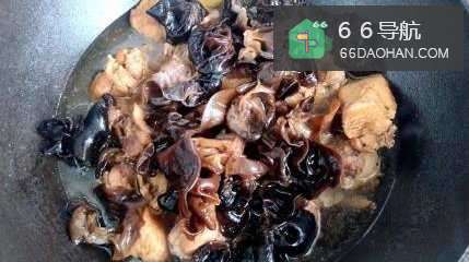 4接下来,我们炖炒至鸡肉熟透,放入提前泡发好的木耳。
