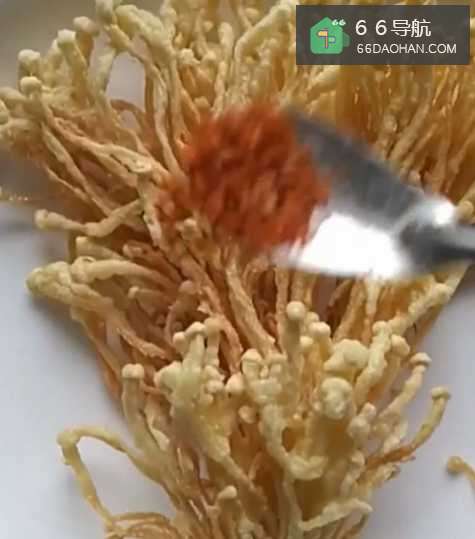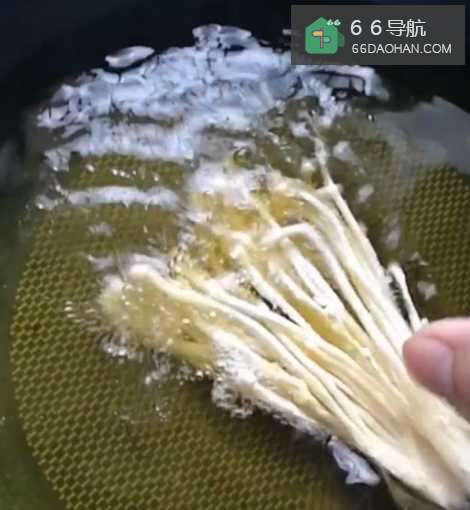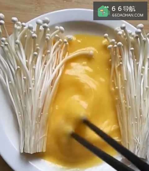 3给金针菇沾上一层鸡蛋液,再沾上一层淀粉;