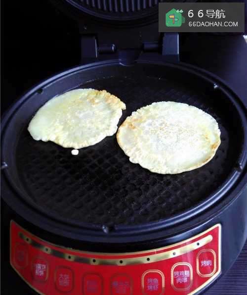 5“预热”完成后,用勺子将面糊舀入烤盘里;一勺一个,两者需隔开距离;启动“煎饼/鸡蛋饼”功能,一面煎好后,翻面继续煎。