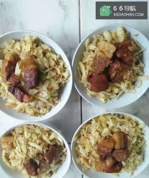 9将洋白菜丝、饼丝、肉块翻炒均匀,就可以出锅了。