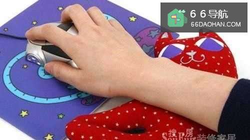 手握鼠标操作,胳膊搭在桌面上,手背就会抬高,长时间处于这种非自然姿势态耍,会迫使肌肉紧张,时间长了就成了鼠标手。