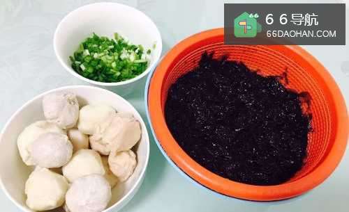 首先把鱼丸提前解冻后洗干净,紫菜提前泡水,葱花切成末备用!