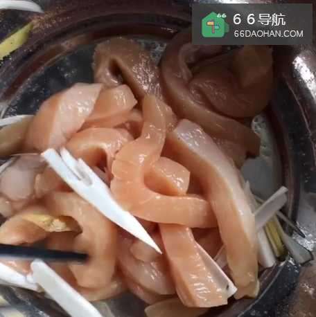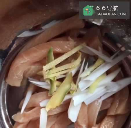 准备一块鸡胸肉,切成小条;