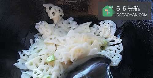 4炒菜锅加入适量的植物油烧熟,把藕片倒入锅里炒一会儿,