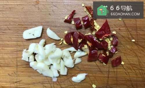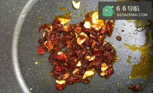 4锅里放油放大蒜和干辣椒炒香后放郫县豆瓣炒香。