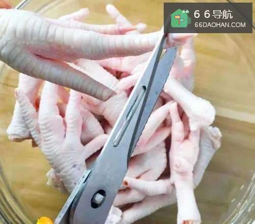 首先把新鲜的鸡爪剁开,剪去鸡爪上的指甲