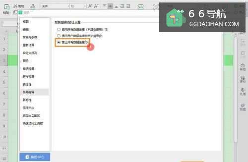 4在外部内容的右侧窗格中,勾选【禁止所有数据连接】,点击【确定】即可。