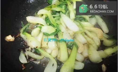 7待豆鼓飘出香味之后,加入前面焯过的上海青,大火快炒一阵,加入其它各种调味料,然后炒匀,试试味道,合适后就可以关火将其装盘了,一盘独特味道的豆鼓上海青就做好了,有兴趣的可以试试。