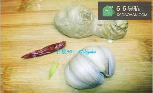 4准备少许辅料生姜、蒜头、辣椒干,分别处理一下,加工成姜丝、蒜末、辣椒段;准备若干豆鼓,将豆鼓放入碗中。
