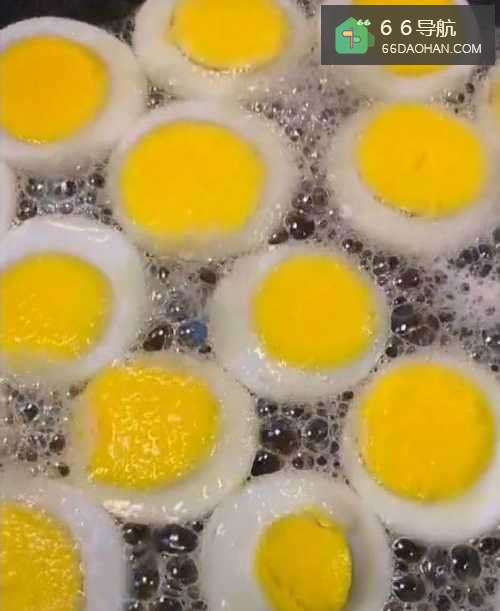 2锅内放油烧热,把切好的鸡蛋放入小火慢煎。