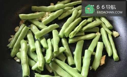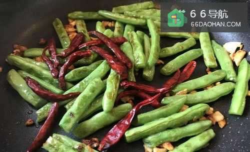 如喜欢吃辣,可在放蒜时一起放入干辣椒,这样煸炒出来的豆角会有辣味。