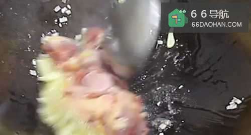 33.锅内加入油,烧至四五成热时,把鸡块放入,用油滑至七八成熟时捞出。