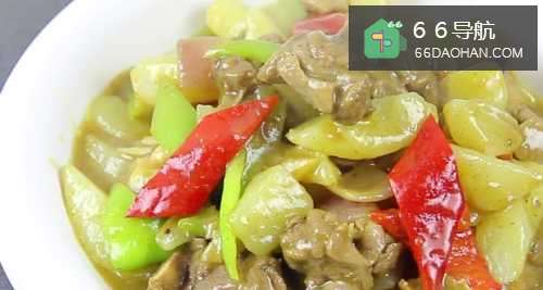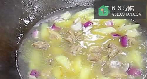 55.鸡肉酥烂时,放入土豆块,挑去葱、姜,待汁收浓时出锅即成。