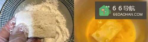 4料汁调好以后裹上淀粉,再裹上鸡蛋液