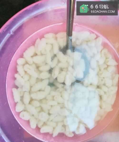 3下麻食,把麻食煮熟后捞进装凉水的盆水里,冷却后沥水待用!利用下麻食的时间准备其他食材。