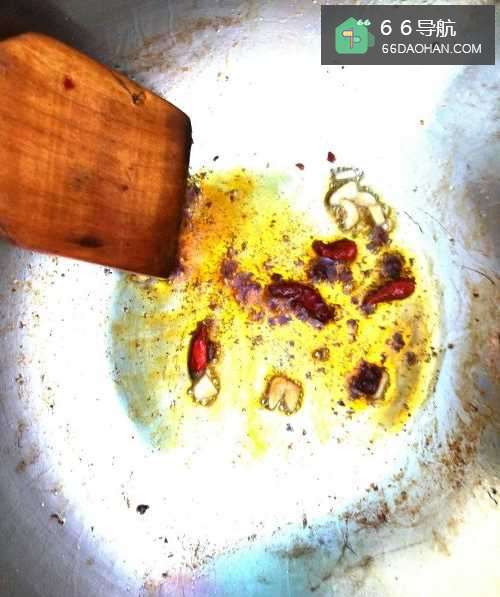 5锅热倒油,油温七分热时放花椒炸出香味后捞出,然后放蒜、干红辣椒、豆瓣酱爆香。