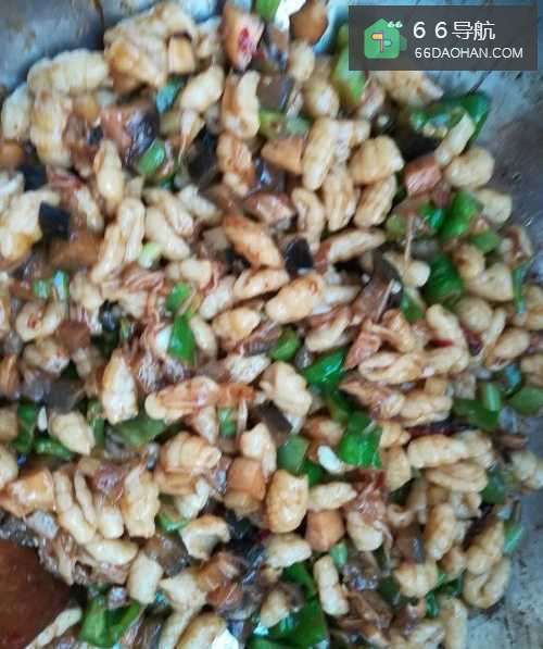 8炒至九分熟时加入沥水之后的麻食,翻炒均匀后加入食盐调味盛出即可食用!