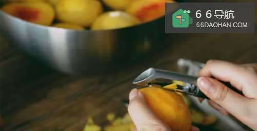 3双手握着桃子扭两下掰开,之后把果核和果肉分开,在把表皮去掉。