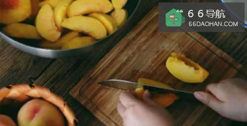 5根据个人喜好,把桃子切成大小适中的块,一个桃子大概能切68块左右。