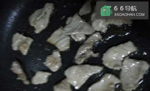 4锅烧热,放入适量油,油温五成热时放入肉片过油,肉片变色后放入黄酒烹香