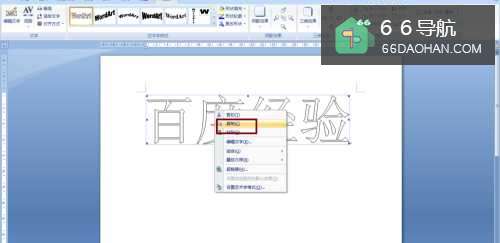 5粘贴后选择新复制的艺术字,右击鼠标,选择【设置艺术字格式】,如图。