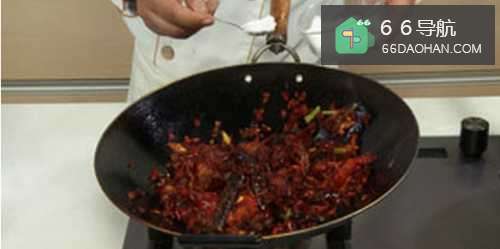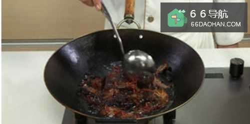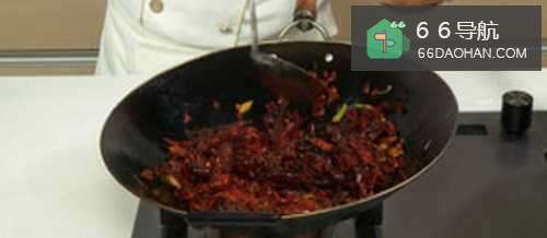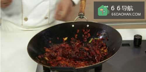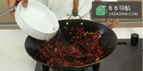 6再放入干辣椒、桂皮、八角、花椒,煸炒出香味。