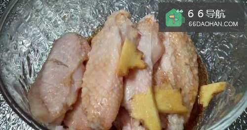 2加入姜、盐、糖、酒、酱油、葱结拌匀腌制。