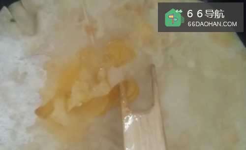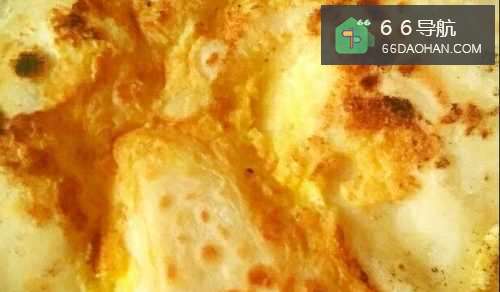 6把鸡蛋放进去之后,再停一小会儿再再用适当的工具将这个面饼翻一翻。