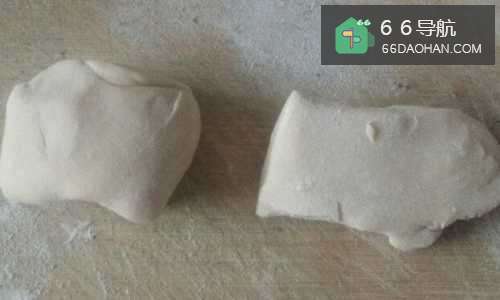 等平底锅里的油热了之后将这个捏好的面片放到锅里。
