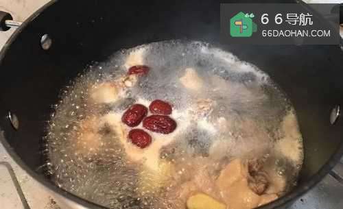2将鸡肉、姜片、红枣放入锅中,加入适量清水大火煮开,中小火炖煮20分钟。