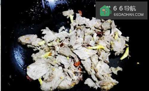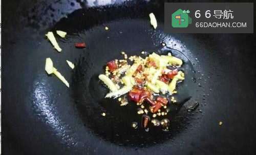 4锅里放油,油温5分热,放入生姜,干红辣椒。