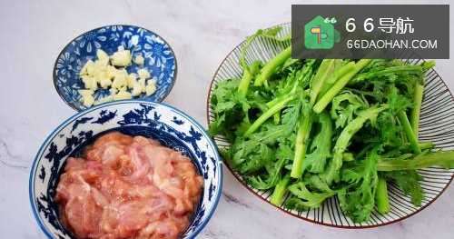 猪肉洗净切成薄片,加入料酒、生抽、玉米淀粉、食用油抓匀腌制备用,茼莴去