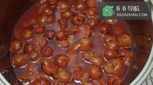 打开火开始煮山楂,开始时可以大火,水开后,用小火煮到果肉变软,汤水变红就可以了。