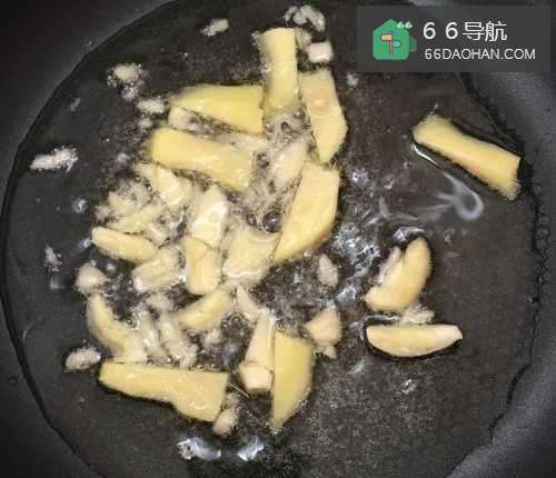 3锅加较多的花生油,先将姜和蒜炸一下。