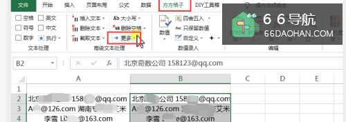 2选中区域,单击【方方格子】选项卡,在【高级文本处理】功能组,选择【更多】
